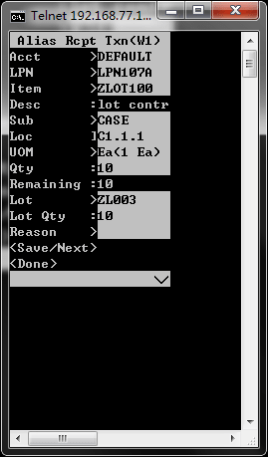 - Use WMS mobile to Misc Receive 2 lots into 2 LPN to the same location, each with 10 qty