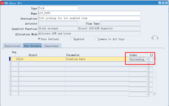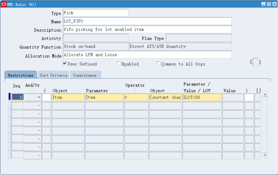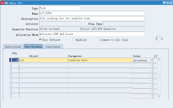 Oracle WMS contains a powerful rule engine, which enables the end users to create complex picking rules for their inventory.